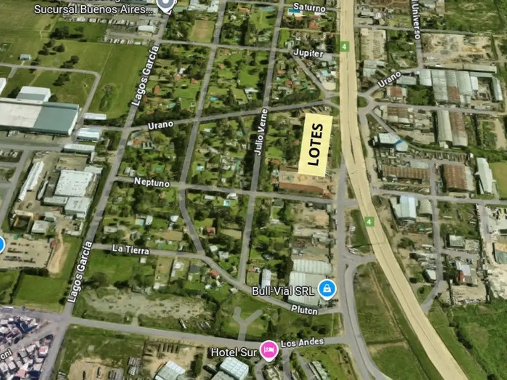-Zona comercial e industrial privilegiada , con frente a la Ruta Nacional N°4 (Ex Camino de Cintura) entre las calles Urano y Neptuno.
