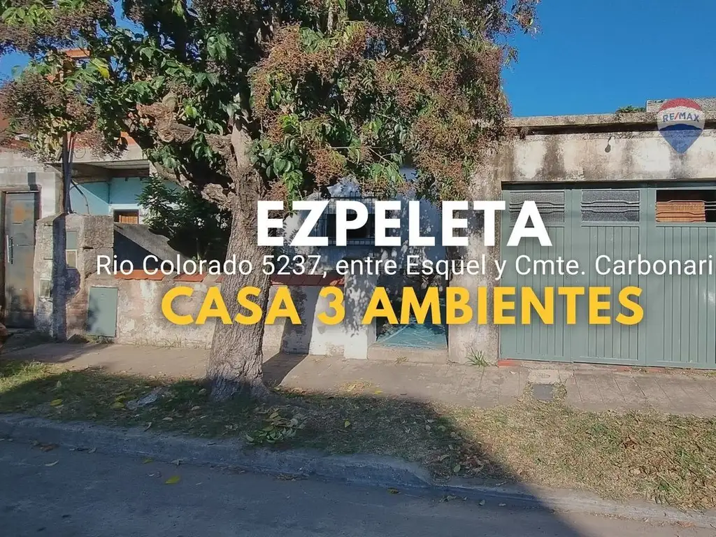 Casa ubicada en Río Colorado al 5200, Ezpeleta este. Ofrece una distribución funcional en planta baja y gran espacio al aire libre. Ideal para construir y/o ampliar.