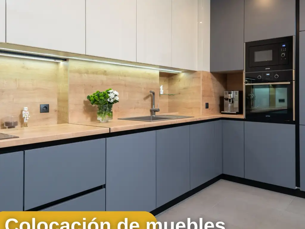 Cocina Completa: Se entrega equipada con bajo mesada de melamina, mesada de granito (negro/gris humo), cocina a gas y pileta Johnson o similar.
