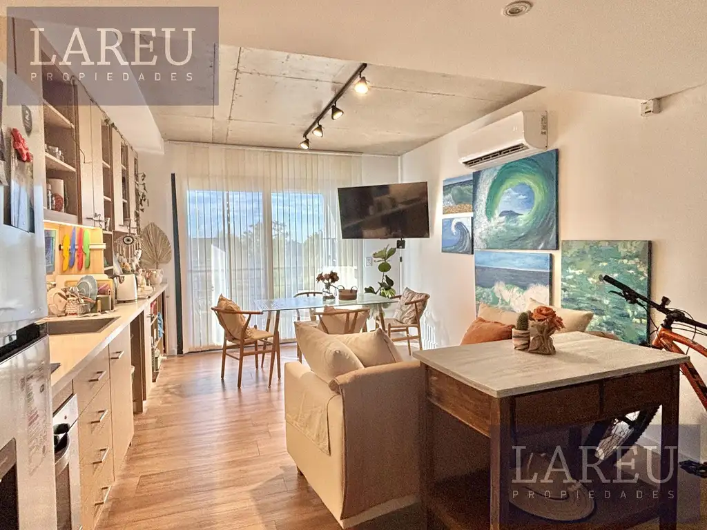 Cuenta con amplio living comedor con cocina integrada con horno , anafe y extracto. Salida al balcón.