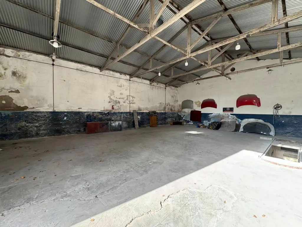 DESCRIPCIÓN: Ingreso vehicular por porton sobre Av. San Martin. Dos espacios destinados a baño y lavadero respectivamente. Mediante un egundo porton de chapa accedemos al galpon principal. Paredes de material, piso de cemento alisado y techo de chapa de 6 metros de altura aproximadamente.