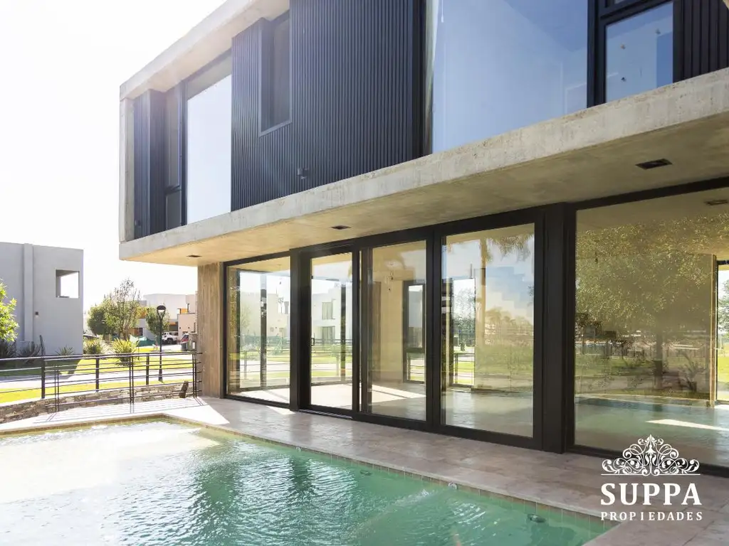 Moderna propiedad de hormigón visto, con fondo libre y un solo vecino, ubicada en un entorno privilegiado con vista abierta a la laguna.