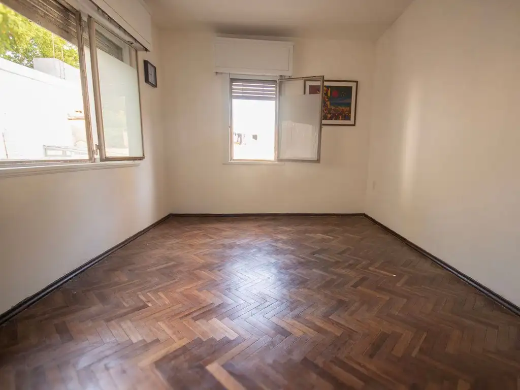Living comedor al frente, con excelente iluminación natural y pisos de parquet.