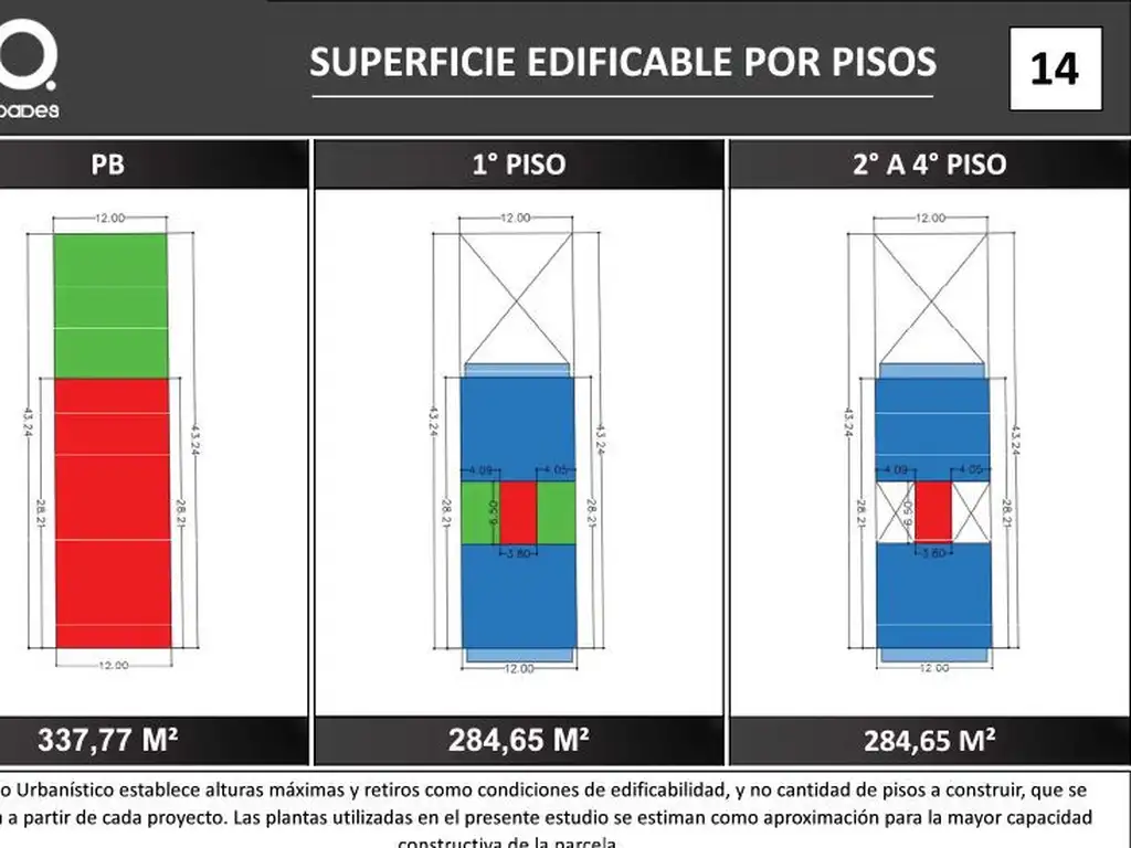 Excelente relación superficie de parcela / m² vendibles, adecuada para unidades de 2, 3 y 4 ambientes.