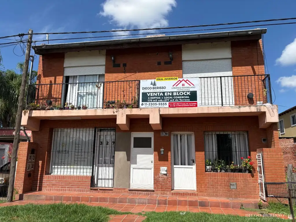 En planta baja cuenta con un local comercial de aproximadamente 34 m2, equipado con un baño y un departamento de dos ambientes, al frente, con aproximadamente 38 m2 de superficie.