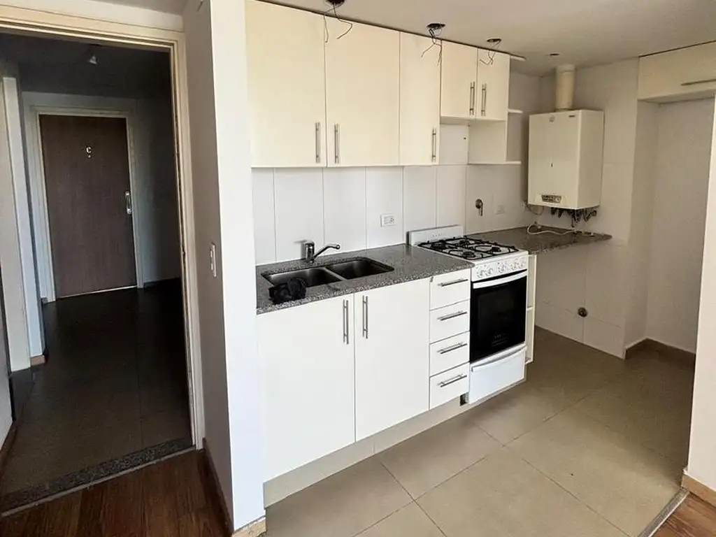 La unidad cuenta con un living comedor amplio y versátil, que se integra a una cocina totalmente equipada con muebles de alacena y bajo mesada de generosa capacidad. El sector de descanso se compone de un dormitorio con un placar amplio empotrado y un baño completo con bañera, manteniendo el estilo de construcción sólida y cómoda.