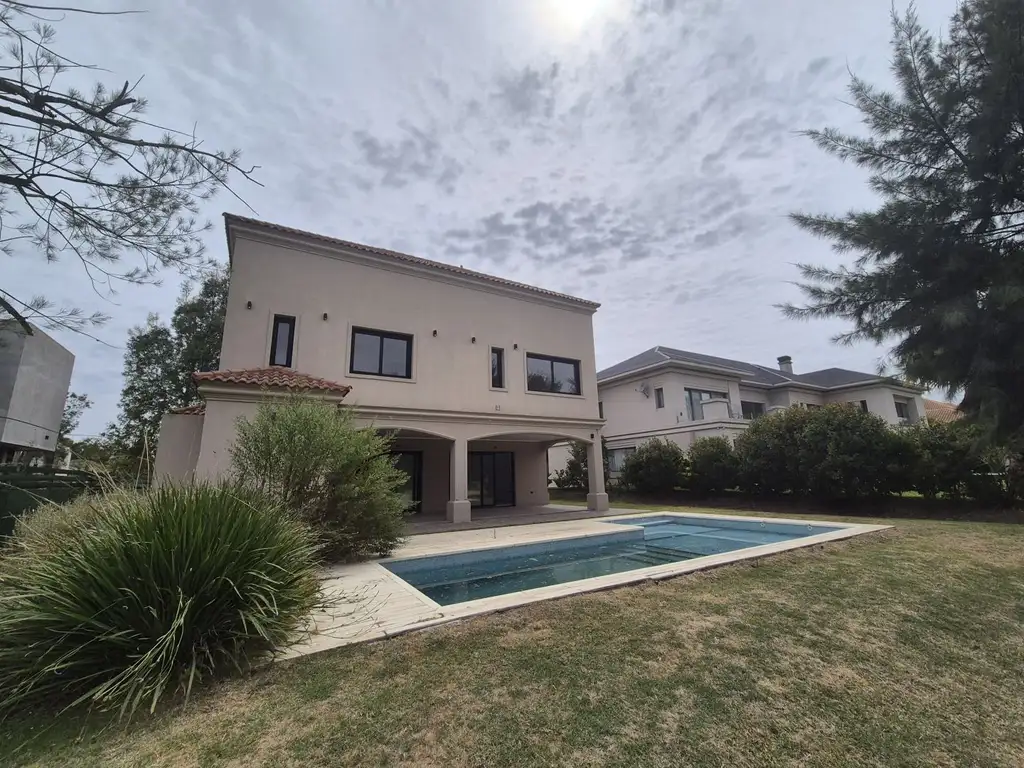 La cocina, diseñada con funcionalidad y estilo, cuenta con muebles alto y bajo mesada de excelente terminación, isla central con artefacto de cocina y campana extractora, gran luminosidad y ventilación natural, conectándose de manera fluida con un comedor diario de uso cotidiano, que también dispone de ingreso auxiliar. Toda la planta baja presenta pisos de porcelanato de alta calidad, combinando estética y durabilidad, y se completa con una amplia galería con parrilla, un parque majestuoso y una piscina exclusiva, donde el fondo del lote se abre hacia el green del golf, ofreciendo una vivencia única en contacto con la naturaleza.