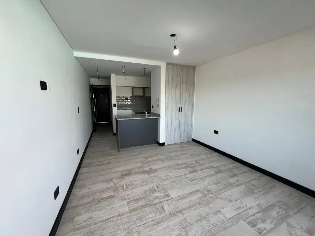 Las unidades cuentan con ambiente cómodo con cocina integrada, pisos de Porcelanato, amoblamientos de cocina bajo y sobre masada melamínicos, mesada de granito con bacha de acero inoxidable, anafe eléctrico de 2 hornallas instalado, termotanque eléctrico instalado marca Escorial; baño con ducha y accesorios instalados, revestimientos porcelanato y cerámicos. Grifería FV, Losa Ferrum. Portero visor. Preinstalación equipos Split.