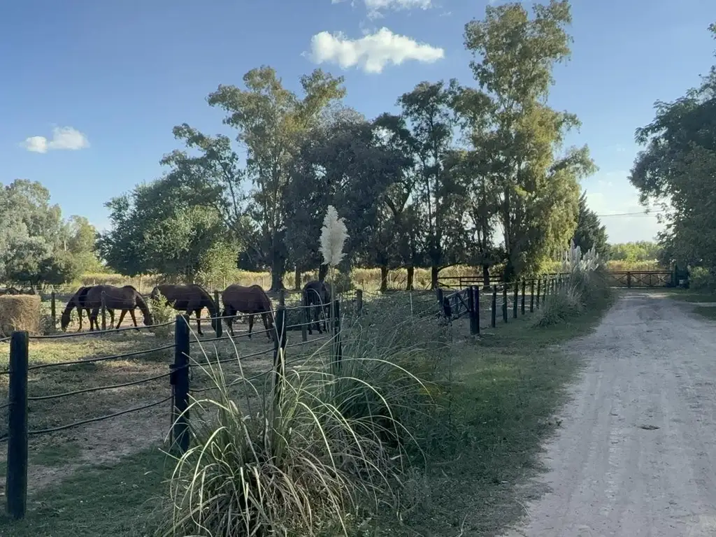 El exterior es igualmente impresionante, con una arboleda añosa que añade un toque de majestuosidad al paisaje. Para los amantes de los caballos, la chacra se alquila con 22 boxes, un picadero, varios corrales, dos silos, y dos casas para caseros.