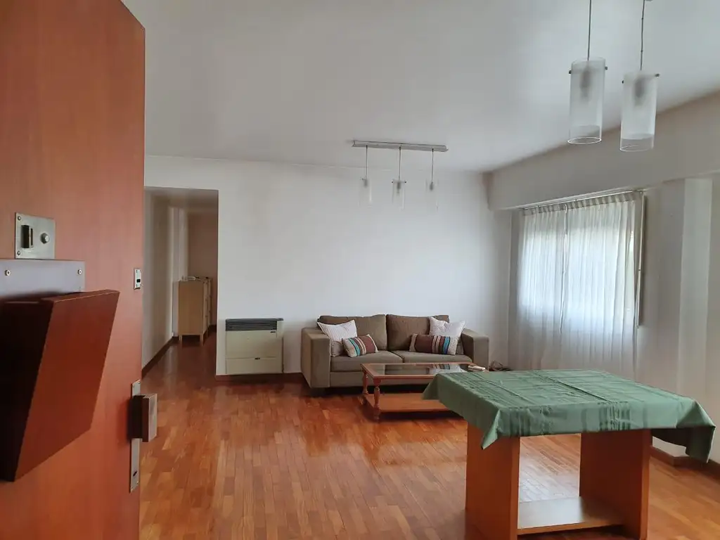 El departamento cuenta con gran living comedor, cocina cómoda y amplia, baño completo y dos dormitorios con placard, pisos de parquett en todo el depto. calefacción por pico de gas y 3 A/C, cochera descubierta y bicicletero en el edificio,