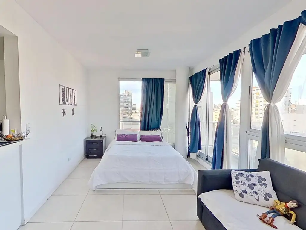 Ambiente amplio y funcional, con cocina integrada y salida directa al balcón, lo que brinda una vista abierta y una gran entrada de luz natural. Baño completo de cómodas dimensiones.