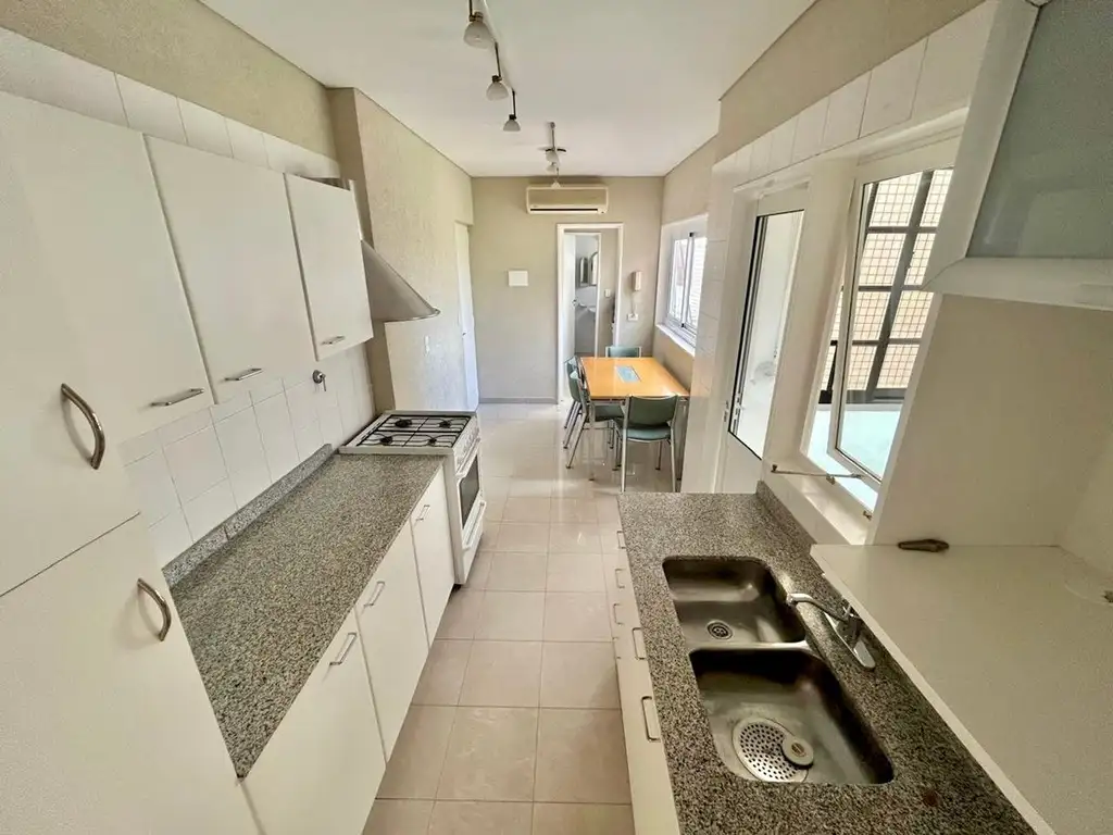 La unidad cuenta con tres baños: uno en suite, otro completo con bañera y un tercero ubicado en la dependencia, lo que garantiza practicidad para la vida diaria y para recibir visitas.