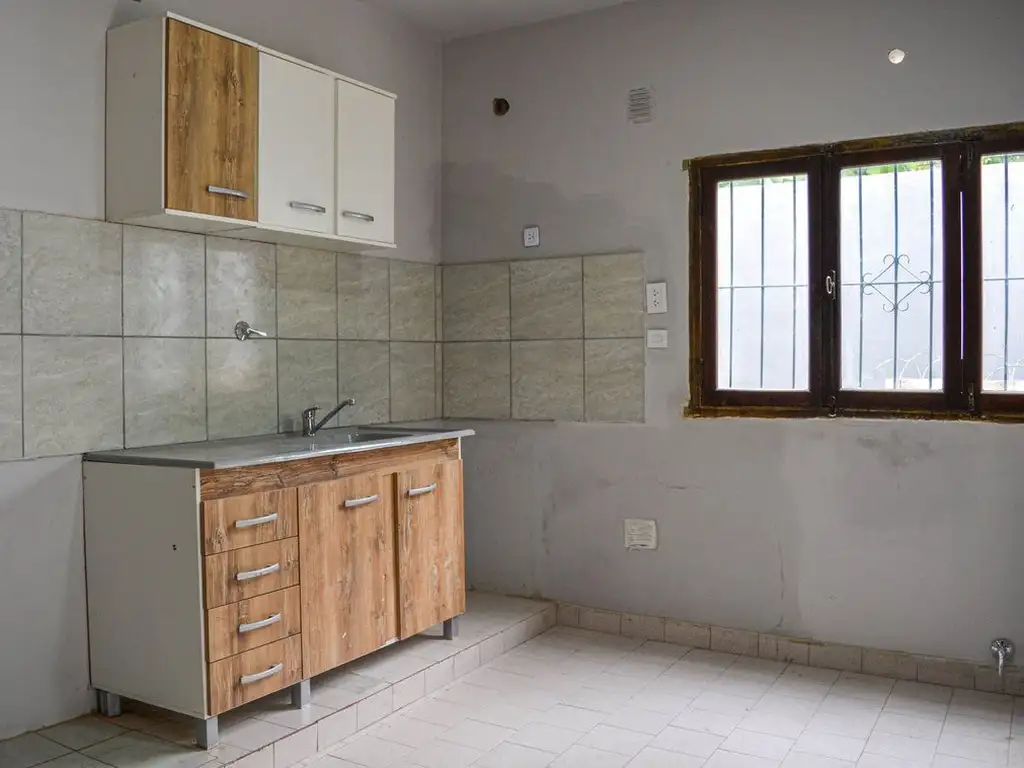 Desarrollado en planta única, con posibilidad/potencial de construir arriba, el inmueble ofrece una distribución estratégica, con dos dormitorios amplios, baño completo y luminosa zona de cocina-comedor integrada. La propiedad se complementa con un patio de 61 m² que expande significativamente los espacios habitables, ideal para actividades familiares o proyectos de expansión.