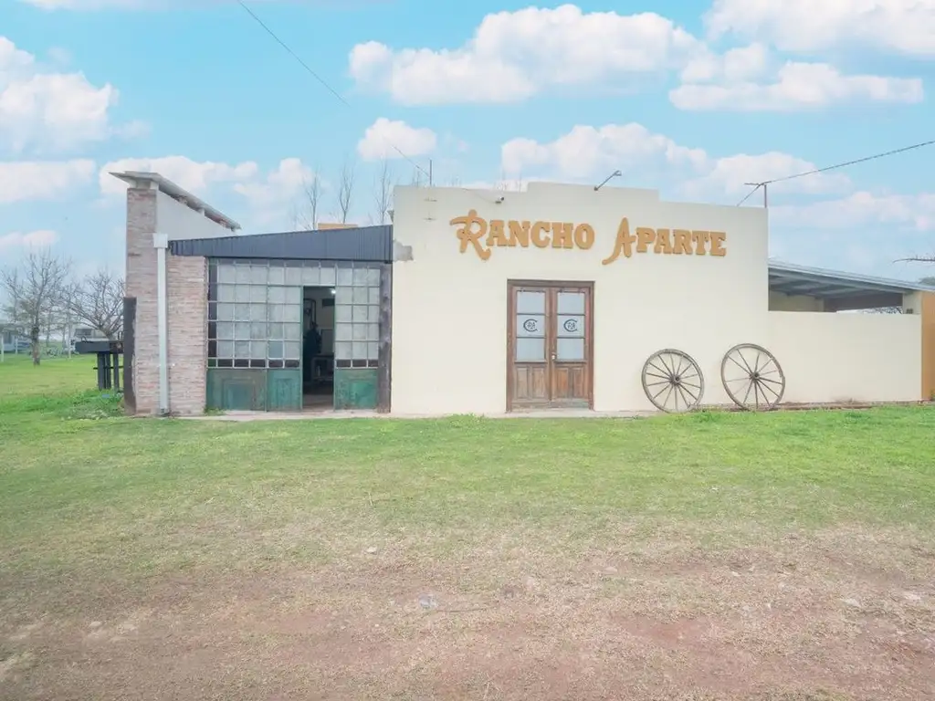 La casa, actualmente utilizada como hospedaje, cuenta con una cocina amplia, un dormitorio espacioso, un baño y una galería cubierta con parrillero.