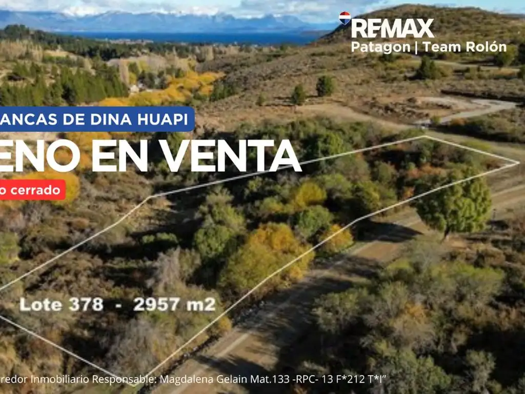 En venta lote de 2.957 m² ubicado en el Barrio Barrancas de Dina Huapi, un entorno natural y tranquilo, ideal para quienes buscan vivir en armonía con la naturaleza sin perder la seguridad y comodidad de un barrio cerrado.