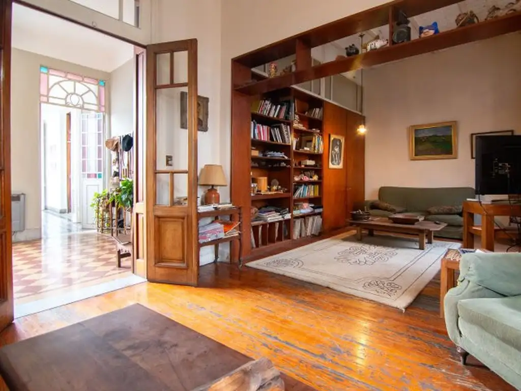 Esta propiedad desarrollada en un primer piso por escalera cuenta con amplias dimensiones, tanto en su interior como en la terraza, perfecta para disfrutar en familia. El amplio living que da a la calle, con dos balconcitos y hogar, es ideal para relajarse. Destaca por su gran luminosidad gracias a sus ventanales, incluyendo un hermoso ventanal con vidrio repartido original que inunda de luz natural todos los ambientes. Los pisos de pinotea y aberturas originales agregan un toque de calidez y carácter a la propiedad.