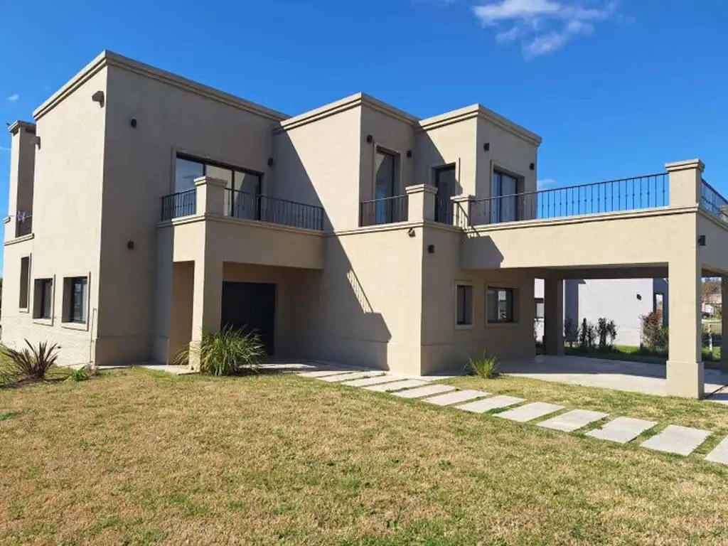 Casa desarrollada en dos planta con amplia vista a la laguna del barrio, uno de los mejores lotes que ofrece los más lindos atardeceres.