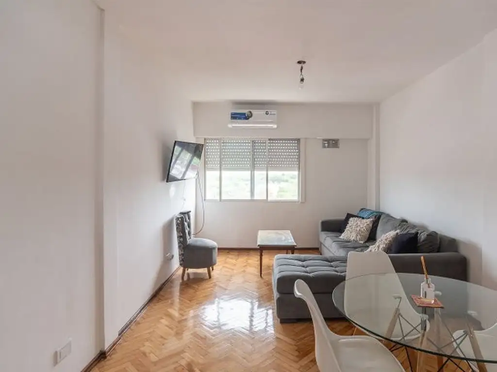 el amplio living comedor. Al ser un piso alto, es super luminoso y silencioso.