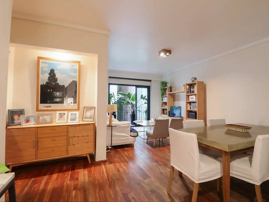 El piso cuenta con tres dormitorios, dos baños completos, cocina práctica con lavadero independiente y terminaciones de calidad. El departamento fue reciclado recientemente, manteniendo su estructura original pero incorporando mejoras contemporáneas.