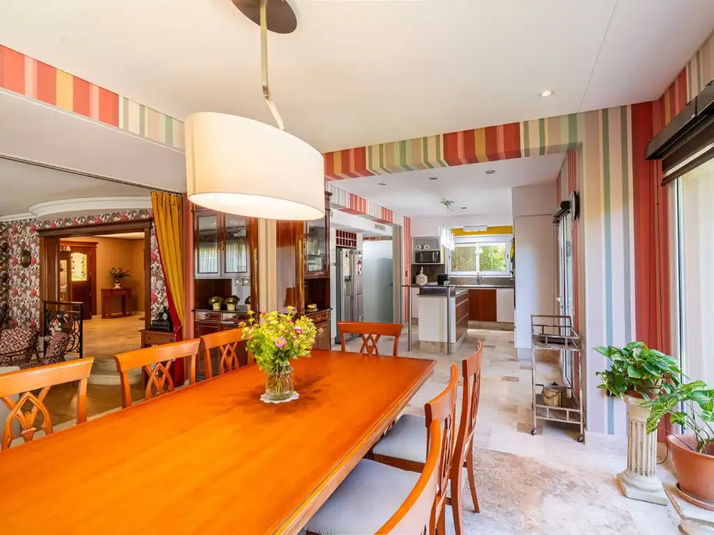 PB: Living, comedor, cocina integrada, sala de cine/estudio, toilette, dependencia de servicio, lavadero, 2 cocheras, solárium, parque.