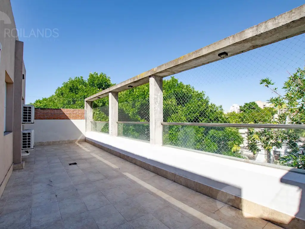 De 35 m2, en el espacio aéreo de la unidad se armo todo el piso cerámico, la conexión de lavarropas y las columnas para el armado de un quincho o espacio cubierto. Faltan la instalación de las barandas y la escalera de acceso desde el balcón terraza.