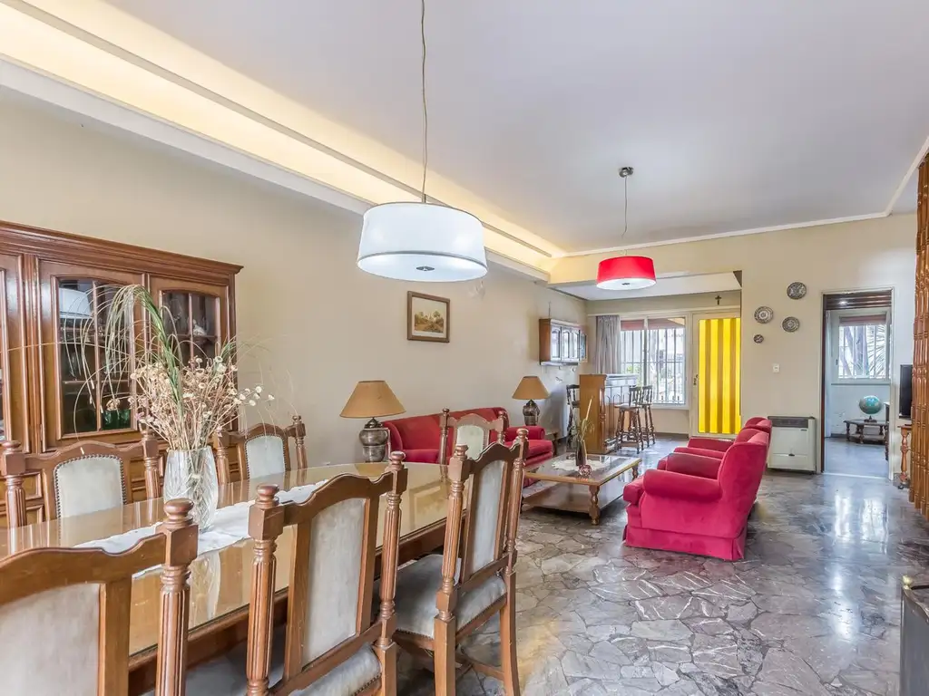 En planta baja, un amplio living comedor se integra con el comedor diario y la cocina independiente, generando espacios funcionales y confortables. Además, cuenta con garage para dos autos, jardín con quincho, habitación de servicio y una oficina con acceso individual, ideal para trabajar desde casa o recibir clientes con total privacidad.