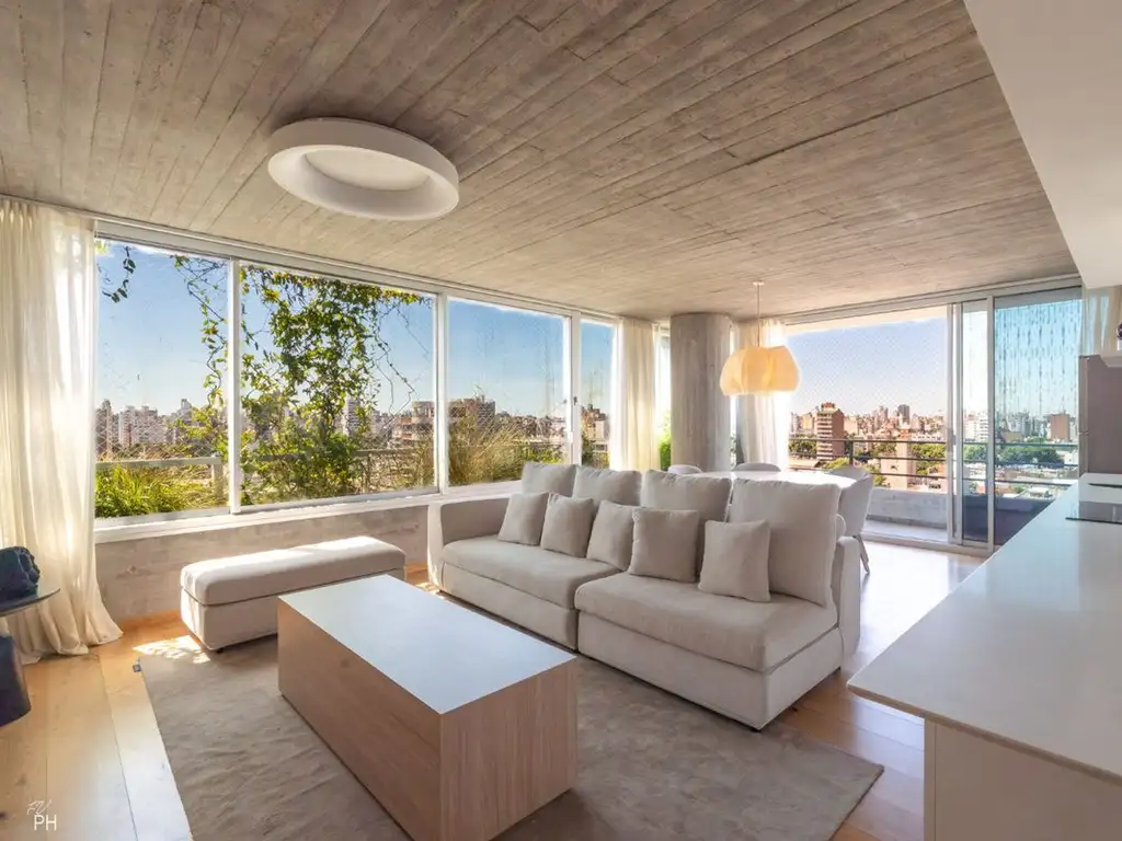 – Terminaciones de calidad: estructura en hormigón visto, aberturas de aluminio con DVH. Pisos de madera de ingeniería combinados con porcelanato en espacios húmedos. Agua caliente central. Climatización por aire con sistema VRV (y losa radiante eléctrica en baños).