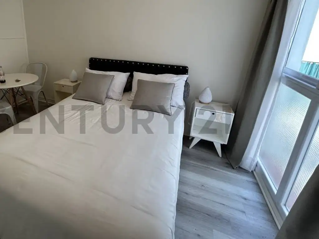 El departamento dispone de una cocina integrada moderna y funcional, que se vincula con el ambiente principal, un espacio amplio y versátil que permite organizar cómodamente el sector de living y dormitorio, adaptándose a distintas necesidades de uso.