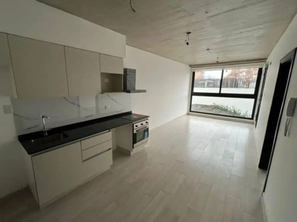 La unidad cuenta con living comedor amplio con cocina lateral con muebles bajo mesada y alacena.