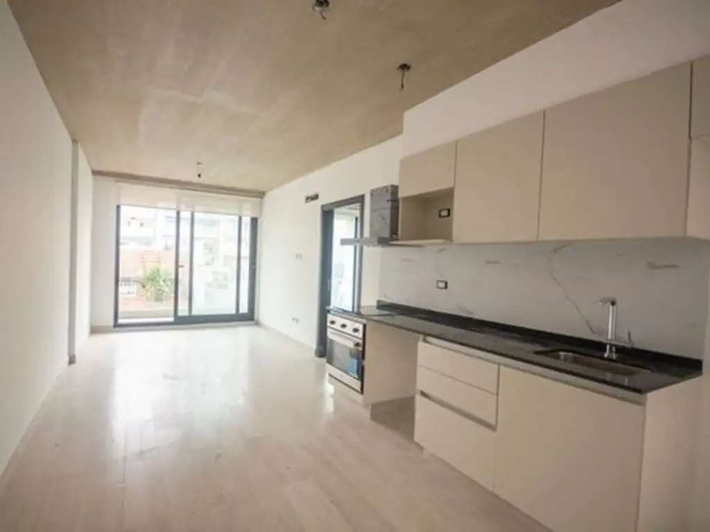 La unidad cuenta con living comedor amplio con cocina lateral con muebles bajo mesada y alacena.