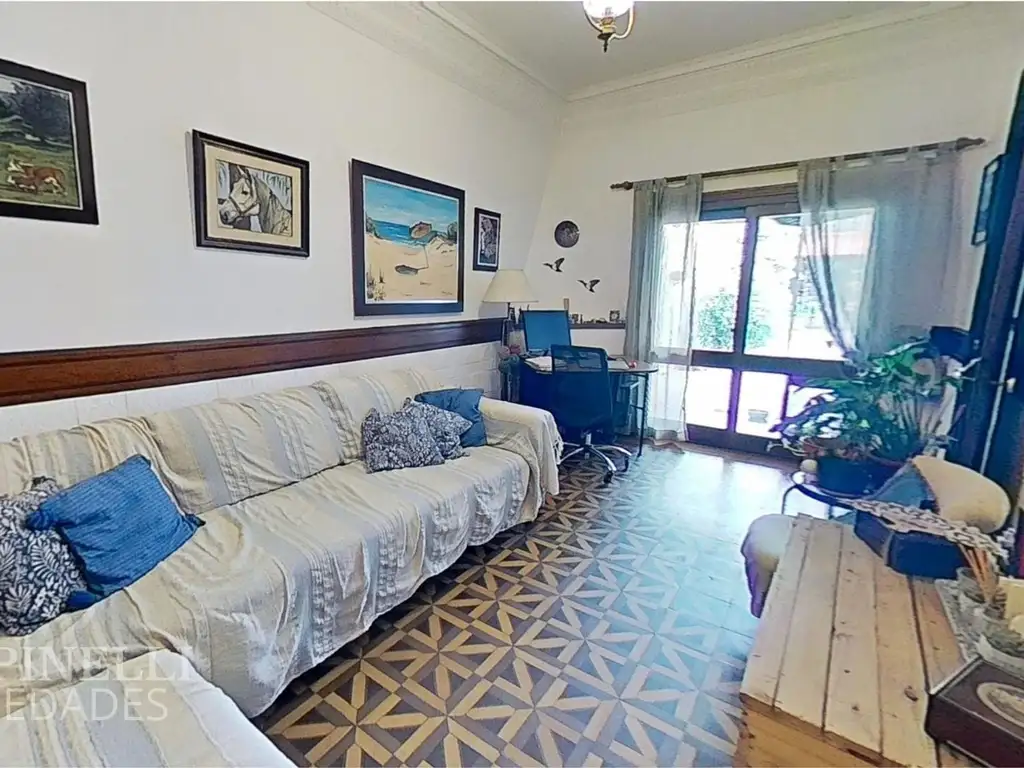 Planta Alta: hall de distribución con claraboya de vitraux, 4 dormitorios con placard (2 con aire acondicionado), baño completo y salida a balcón terraza con acceso a otro dormitorio.