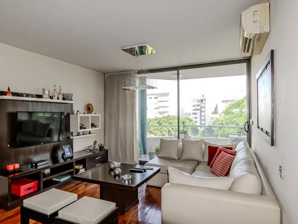 La unidad ofrece una distribución funcional y cómoda, ideal para quienes priorizan amplitud y calidad de vida. Cuenta con un gran living comedor de excelentes dimensiones, muy luminoso, con salida a un balcón terraza con vista directa a la plaza, generando un entorno abierto y agradable.