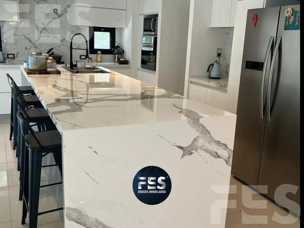 -Cocina comedor integrado con isla, muebles completos, horno empotrado y anafe. Mesadas de piedra silestone, e isla revestida en piedra calacata.