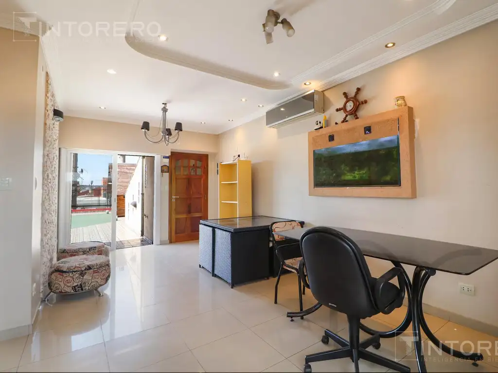 Al ingresar nos recibe un amplio living comedor de estilo moderno, con excelente distribución y iluminación mediante luces dicroicas, generando un ambiente cálido y contemporáneo.