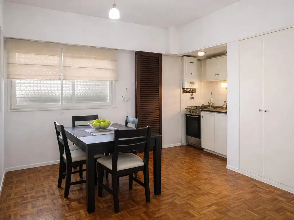 La unidad cuenta con un ambiente amplio y funcional, que permite organizar cómodamente un sector de dormitorio, mesa para comedor diario y espacio de escritorio o home office, ideal para quienes trabajan o estudian desde casa.