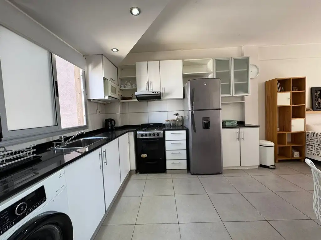Cocina integrada al living comedo (6,60 x 3 metros), buena capacidad de guardado en muebles de bajo mesada y alacena. Mesada de granito negro brasil, bacha doble, griferia y artefactos y buena calidad. Conexión para lavarropas bajo mesada. Ventana al pulmon lo que permite una muy buena entrada de luz natural y generar corriente de aire.