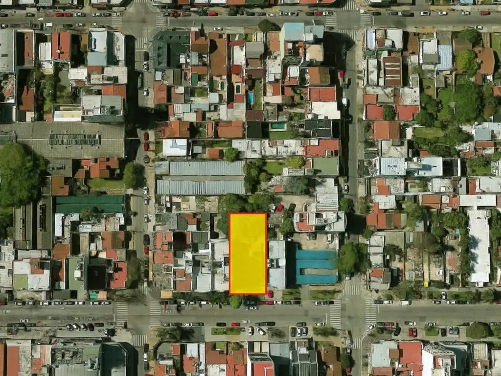 Incluye una construcción en planta alta de 396 m2 que requiere refacción o demolición. La propiedad ofrece servicios de agua corriente, cloacas, gas natural, electricidad, pavimento y alumbrado público.