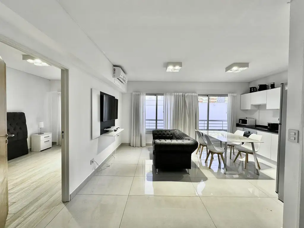 La unidad cuenta con una disposición al contrafrente, garantizando tranquilidad y luminosidad. El living comedor es amplio y posee pisos de porcelanato con losa radiante, asegurando confort en todas las estaciones. La cocina está integrada, optimizando el espacio y ofreciendo una distribución práctica.