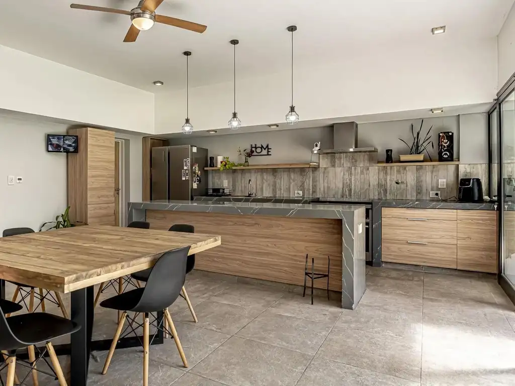 El ambiente principal se conecta mediante una apertura total hacia la galería, dando al patio trasero.