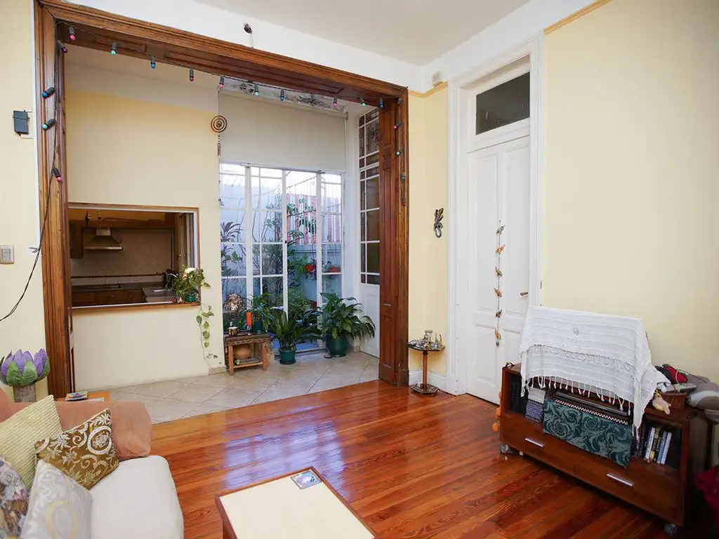 Este salón es el espacio de estar y comedor del PH, el cual tiene balcón sobre la Av. Álvarez Thomas y resguardado en privacidad por los frondosos arboles de en frente de la propiedad.