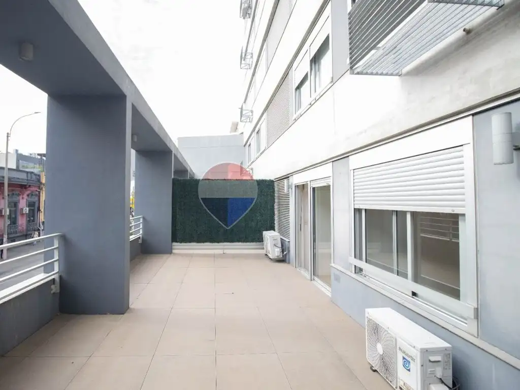 Amplia terraza/balcón que abarca todo el frente del apartamento y cumple la función de gran patio en altura.
