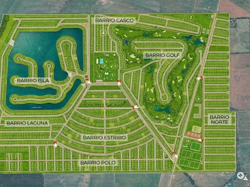 El mega desarrollo ofrece un concepto de vida de campo moderna, con amenities actuales y proyectados: