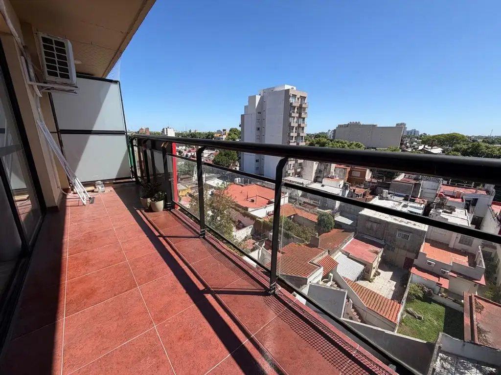 Amplio monoambiente en impecable estado, con cocina integrada, baño completo y salida a un balcón terraza de generosas dimensiones con vista abierta. La unidad recibe excelente luz natural y cuenta con pisos símil madera que aportan calidez y continuidad.