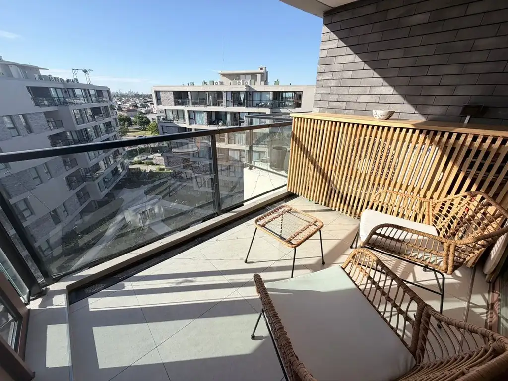 Moderno, luminoso y con detalles de categoría, este departamento ubicado en piso 6, se destaca por su hermosa vista y excelente entrada de luz natural en todos sus ambientes. Al ingresar, encontramos un amplio living comedor con salida directa a un balcón de cómodas dimensiones, ideal para disfrutar del aire libre. La propiedad cuenta con toilette de recepción, cocina independiente totalmente equipada, con muebles de bajo mesada y alacena, muebles hecho a medida con materiales de primera calidad y excelente funcionalidad. Dispone de dos dormitorios, ambos con placares de gran tamaño, destacándose la habitación principal en suite, con baño completo y terminaciones premium. El departamento ofrece calefacción por losa radiante, pisos de porcelanato, carpinterías símil madera y aberturas con doble vidrio hermético (DVH), garantizando confort térmico y acústico. Una propiedad moderna, lista para habitar, pensada para quienes buscan calidad, diseño y una ubicación privilegiada dentro de uno de los desarrollos más destacados de la zona.
