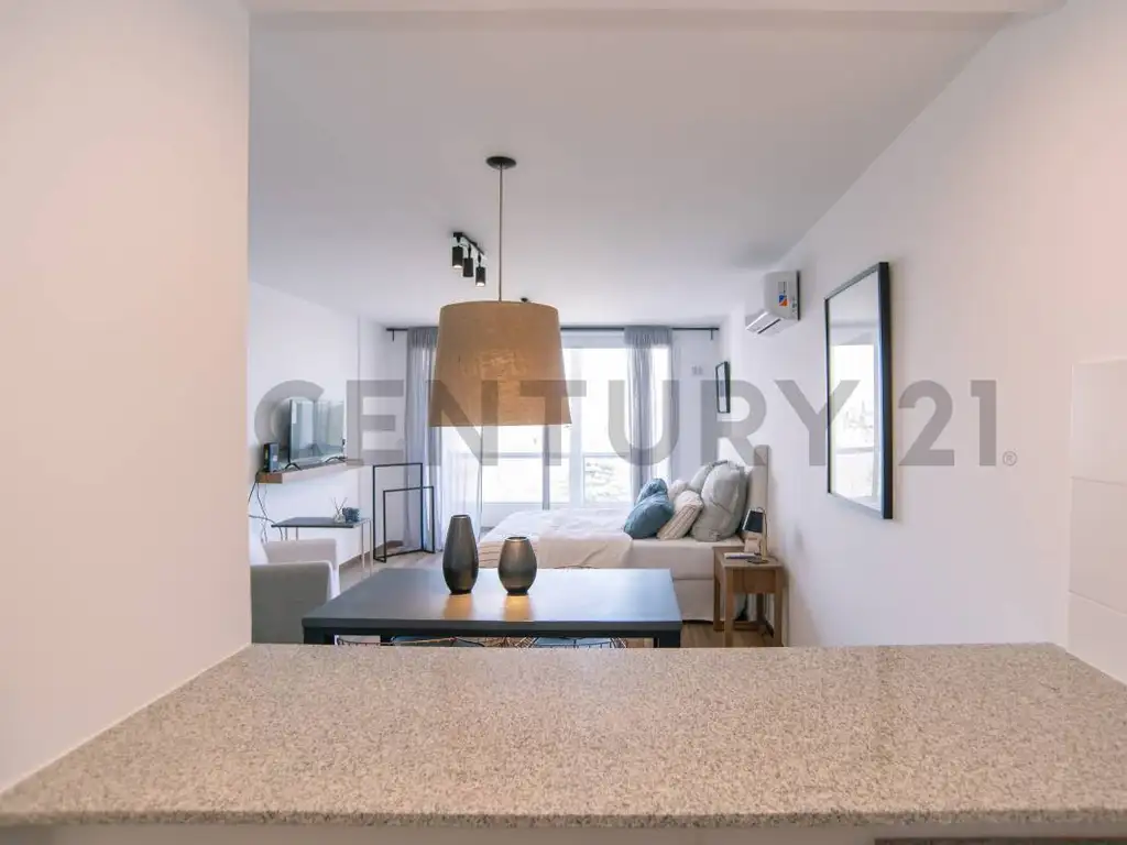 Ambiente único, amplio y divisible de cocina, comedor (o living) y dormitorio.. Cocina completa con barra integrada. Espacios luminosos por amplias aberturas. Baño completo. Calefacción por losa radiante