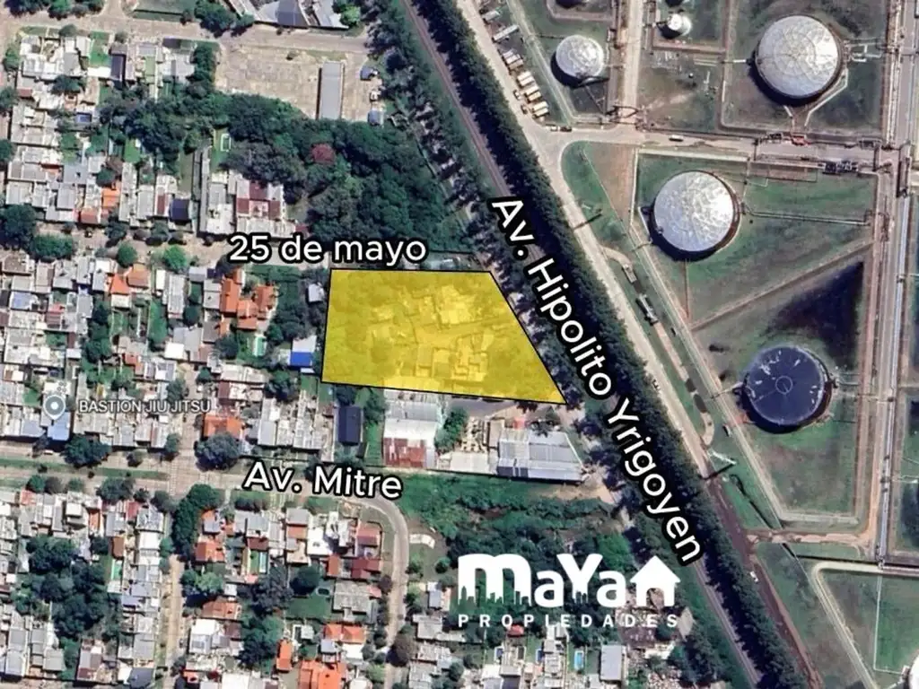 Este macizo de 4.197 m² se ubica en una localización estratégica en la intersección de Av. Hipólito Yrigoyen y calle 25 de Mayo, dentro del Sector Barranca, un área caracterizada por la consolidación de depósitos, galpones, actividades productivas y servicios logísticos vinculados al corredor industrial de la ciudad.