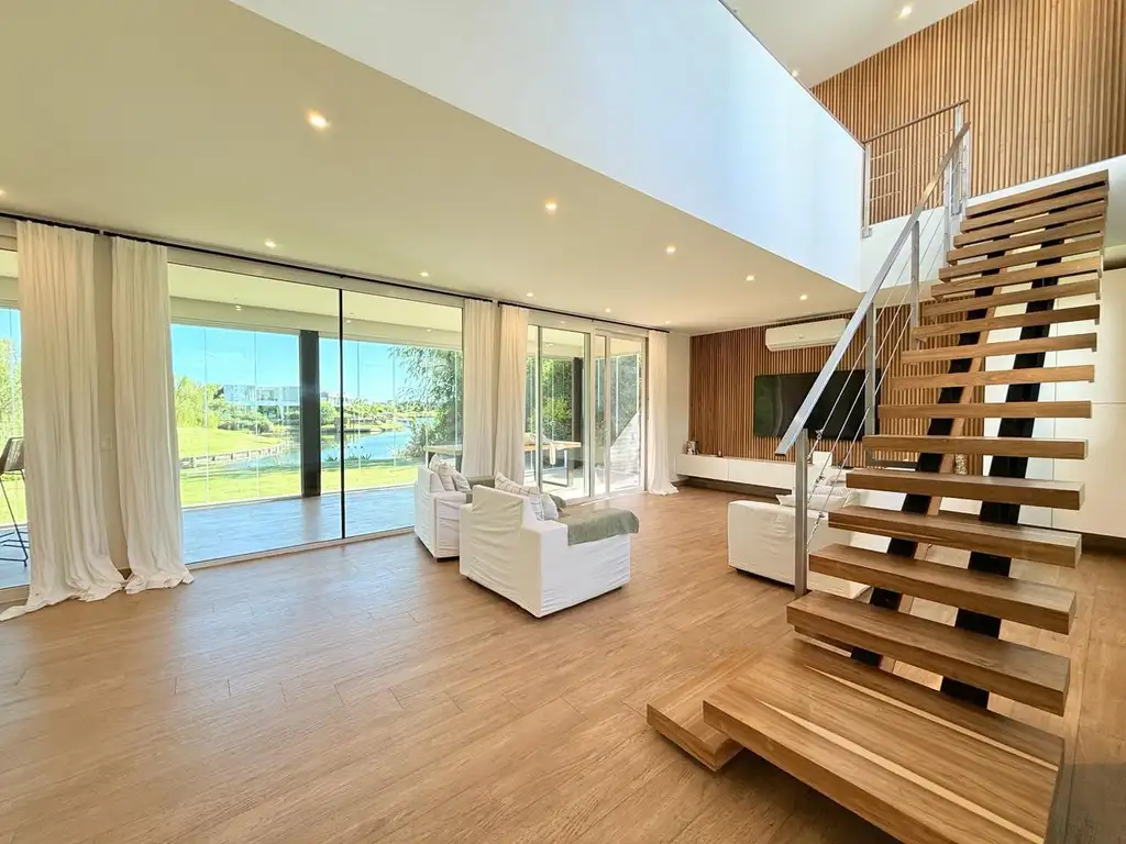 Amplio Living Comedor que forman el corazón de la casa, concebido para momentos de disfrute. Con posibilidad de integrarse al proximo ambiente que es la galeria, gracias a sus ventanales generando un único ambiente continuo al lago.