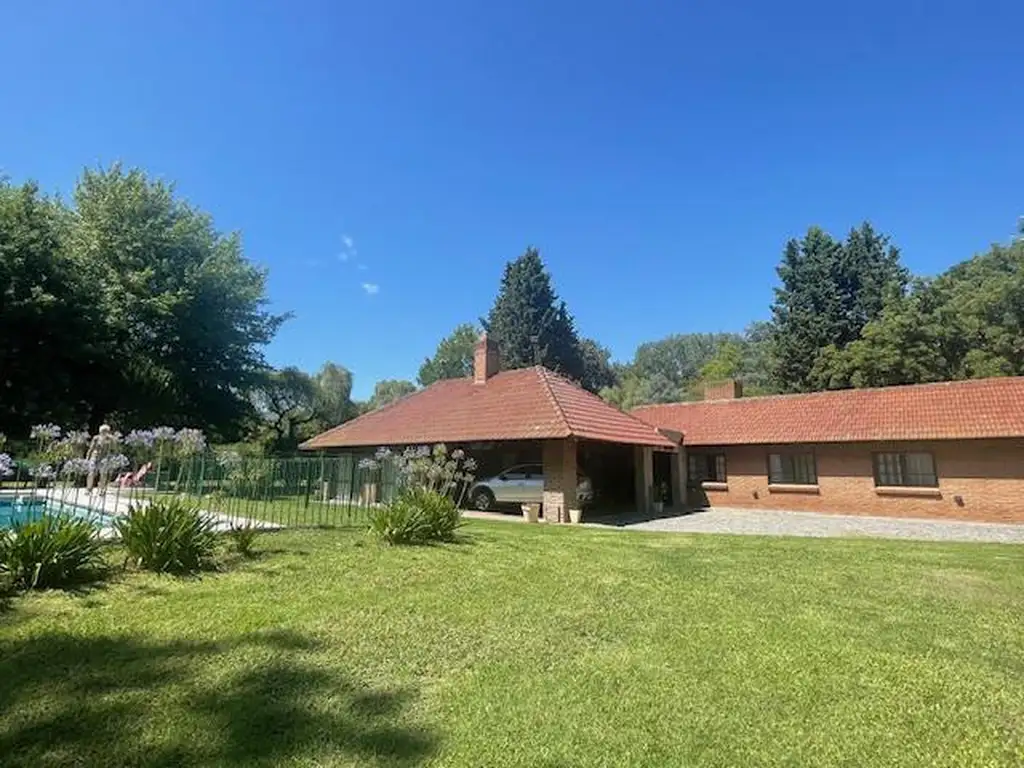 EDIFICADA EN GRAN LOTE PARQUIZADO DE 3018M2, EN UNA PLANTA, LADRILLO VISTO Y TECHO DE MADERA Y TEJAS. CALEFACCION POR TIROS BALANCEADOS. CERCADA CON PORTON DE HIERRO FORJADO Y ACCESO VEHICULAR ADOQUINADO. 2 AIRES ACONDICIONADOS EN COMEDOR Y SUITE.