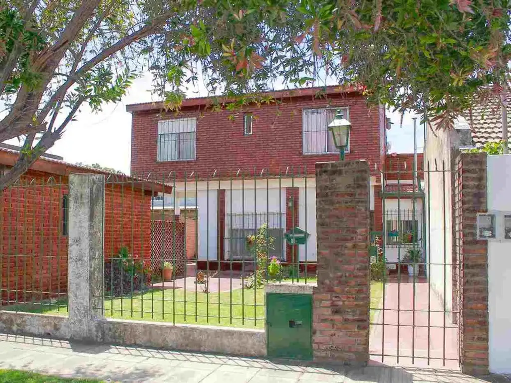 Cuenta con living, comedor, cocina, 3 dormitorios y 2 baños completos. Jardín delantero, galería, parrilla, garage techado y cuarto de guardado.