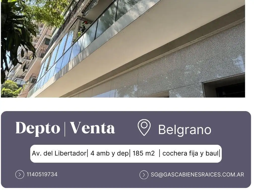 Venta Depto Belgrano 4 amb y dependencias con cochera fija y gran balcón sobre Av. del Libertador